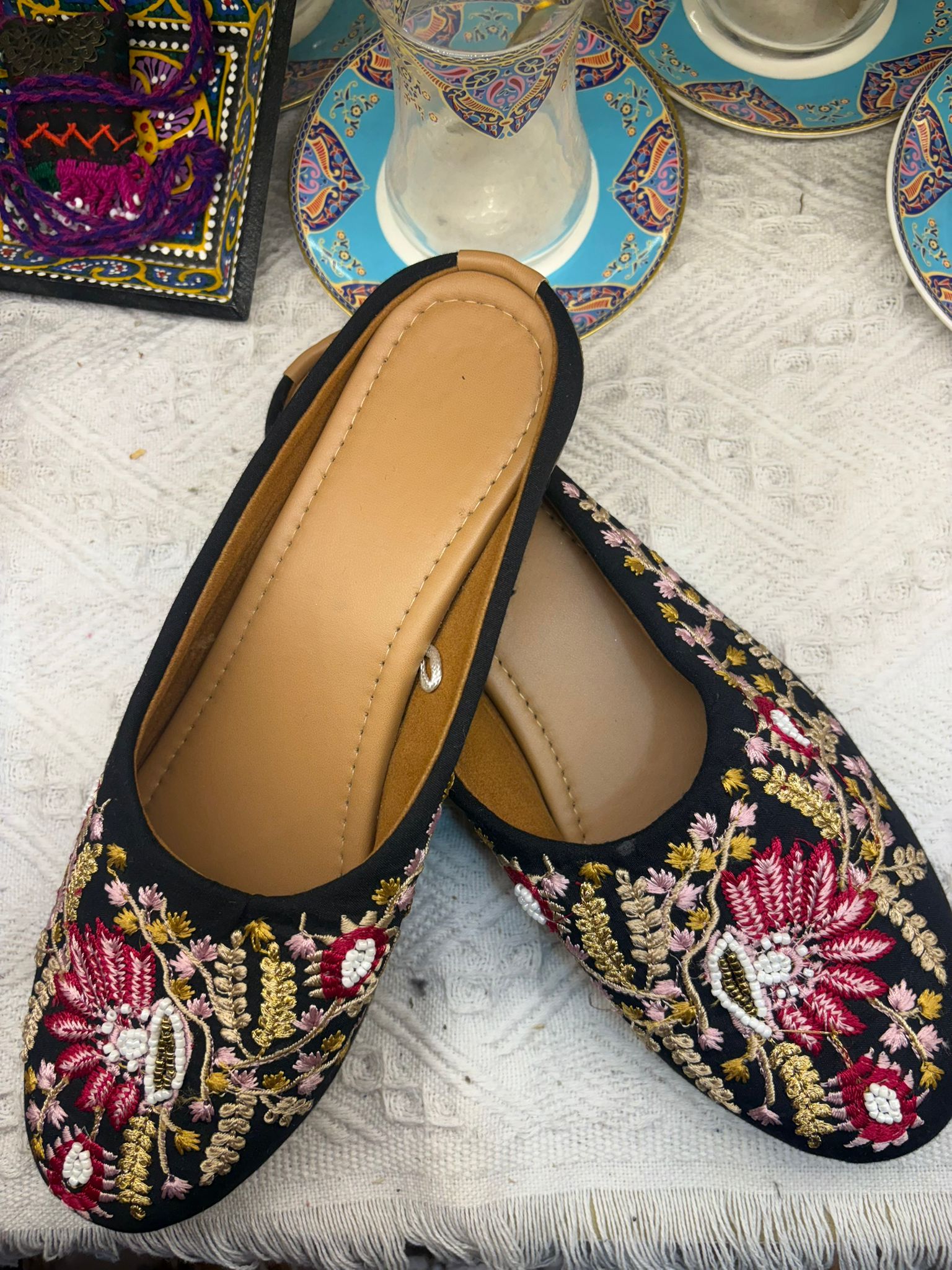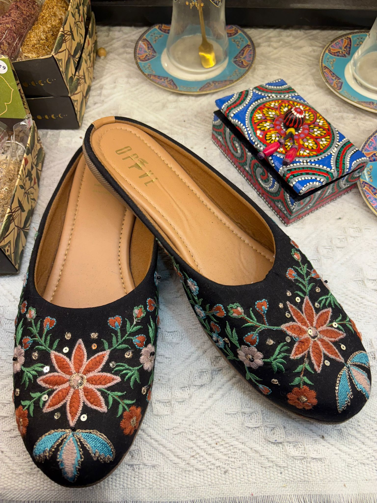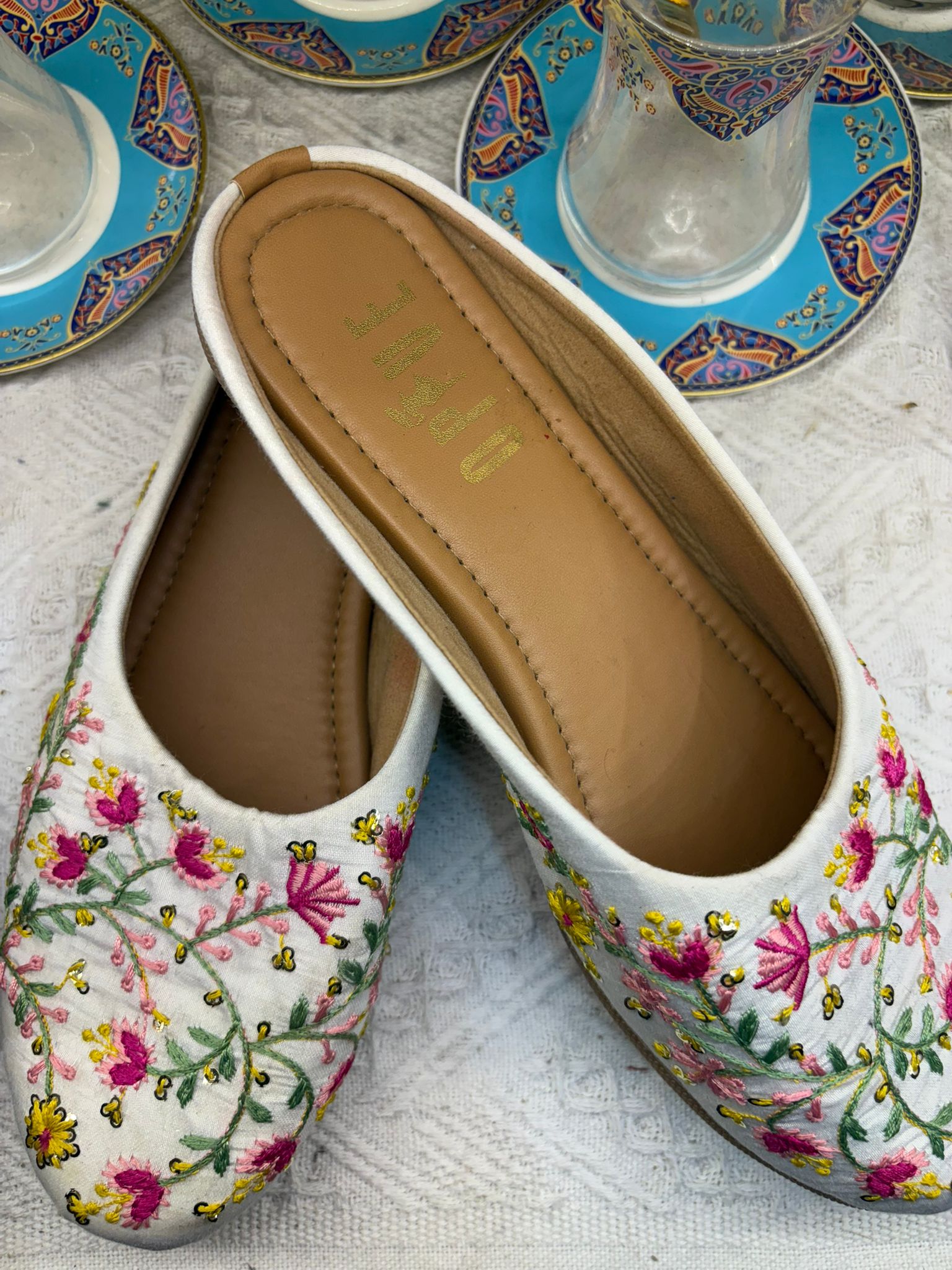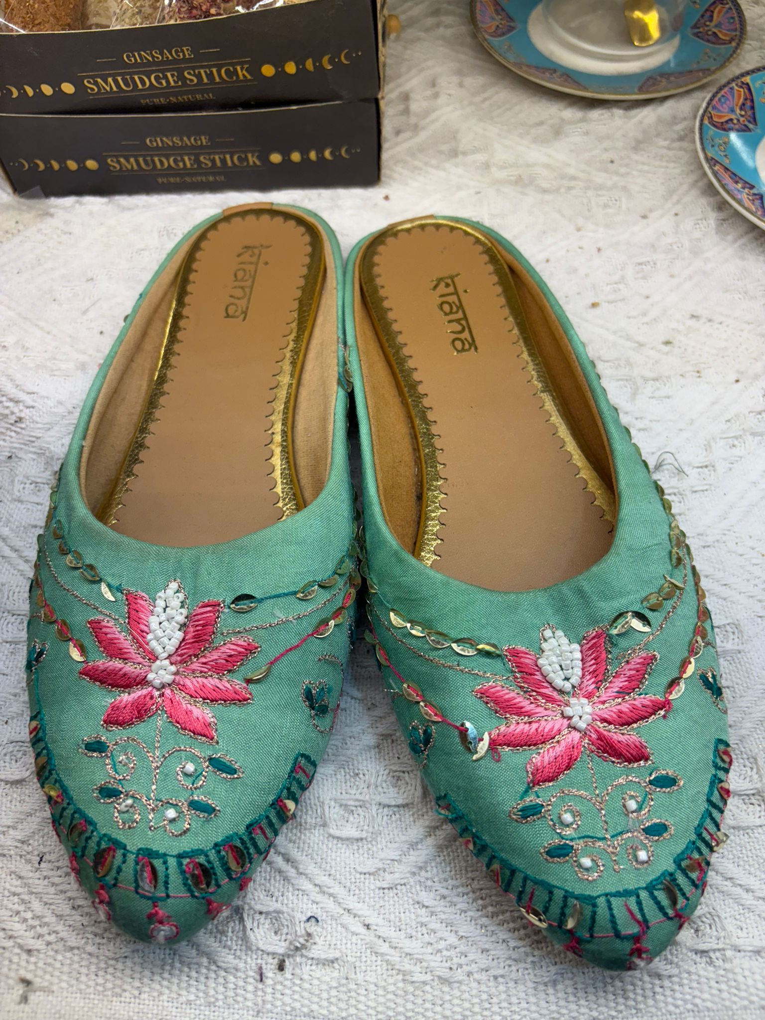 粉藍白色珠珠配刺繡平底Jutti鞋