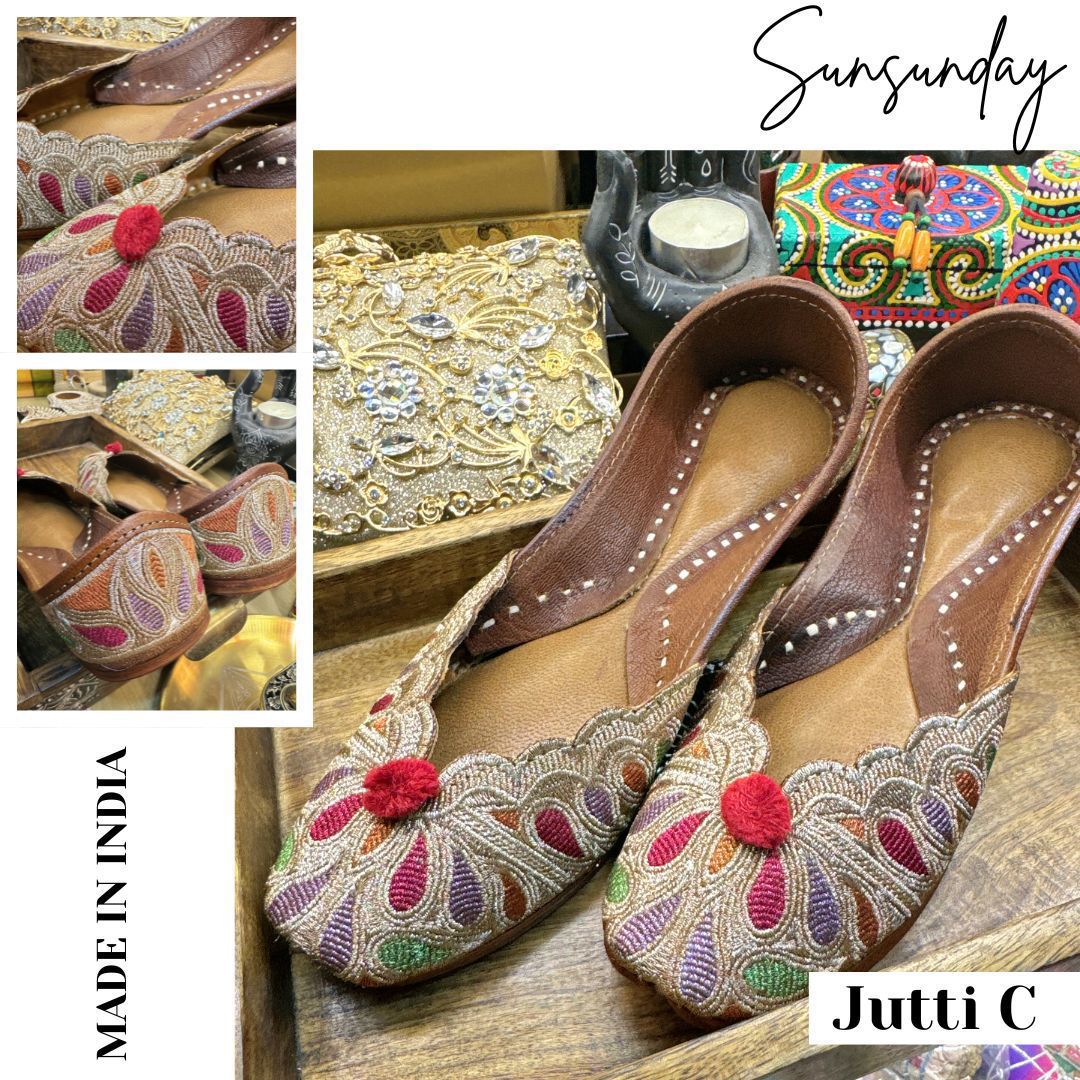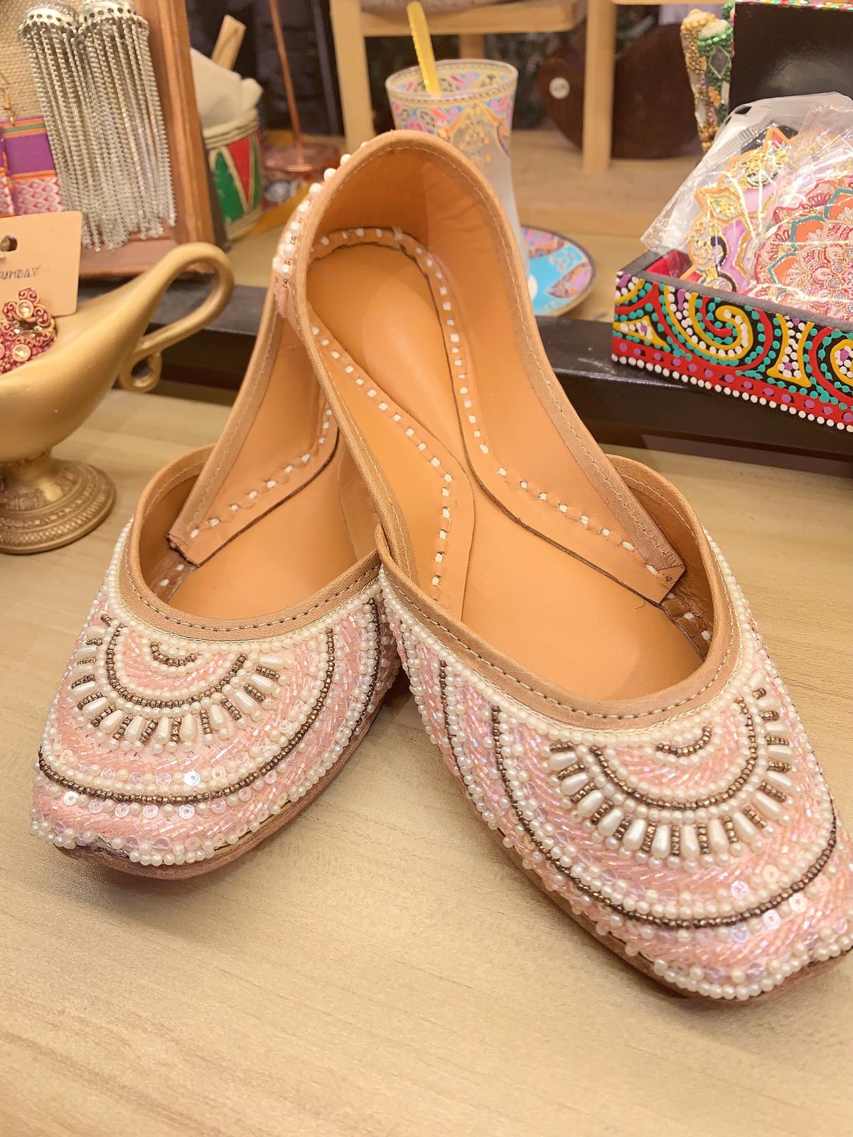 粉紅白色珠珠配刺繡平底Jutti鞋