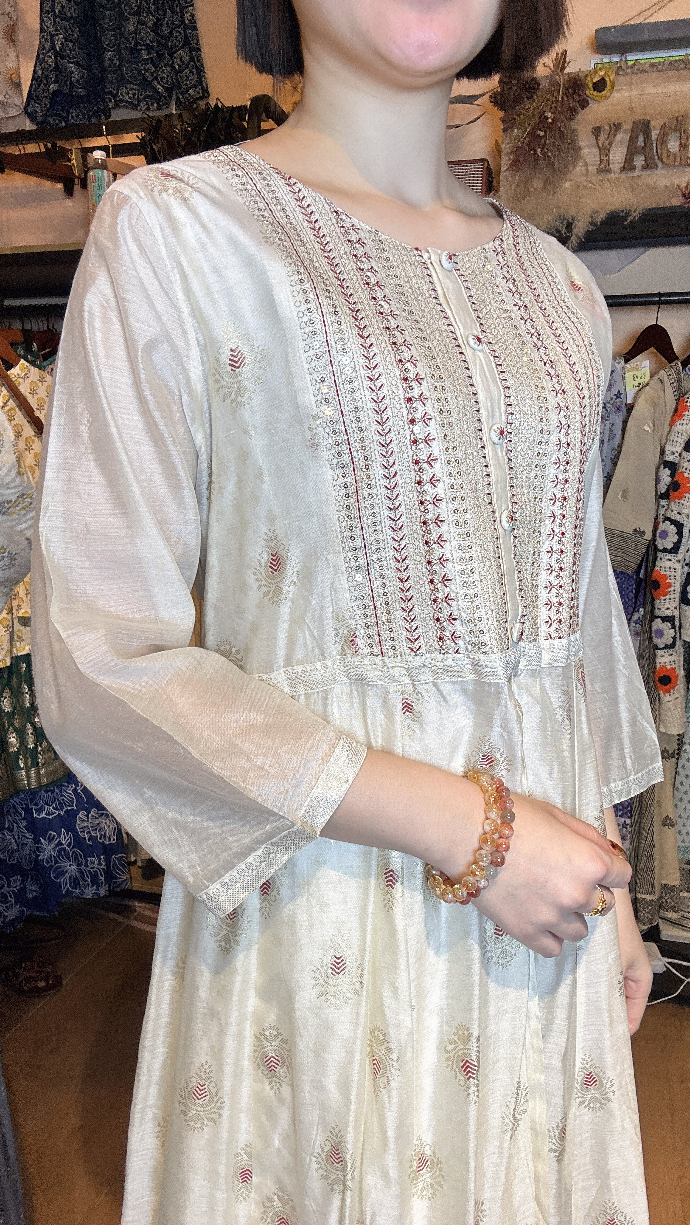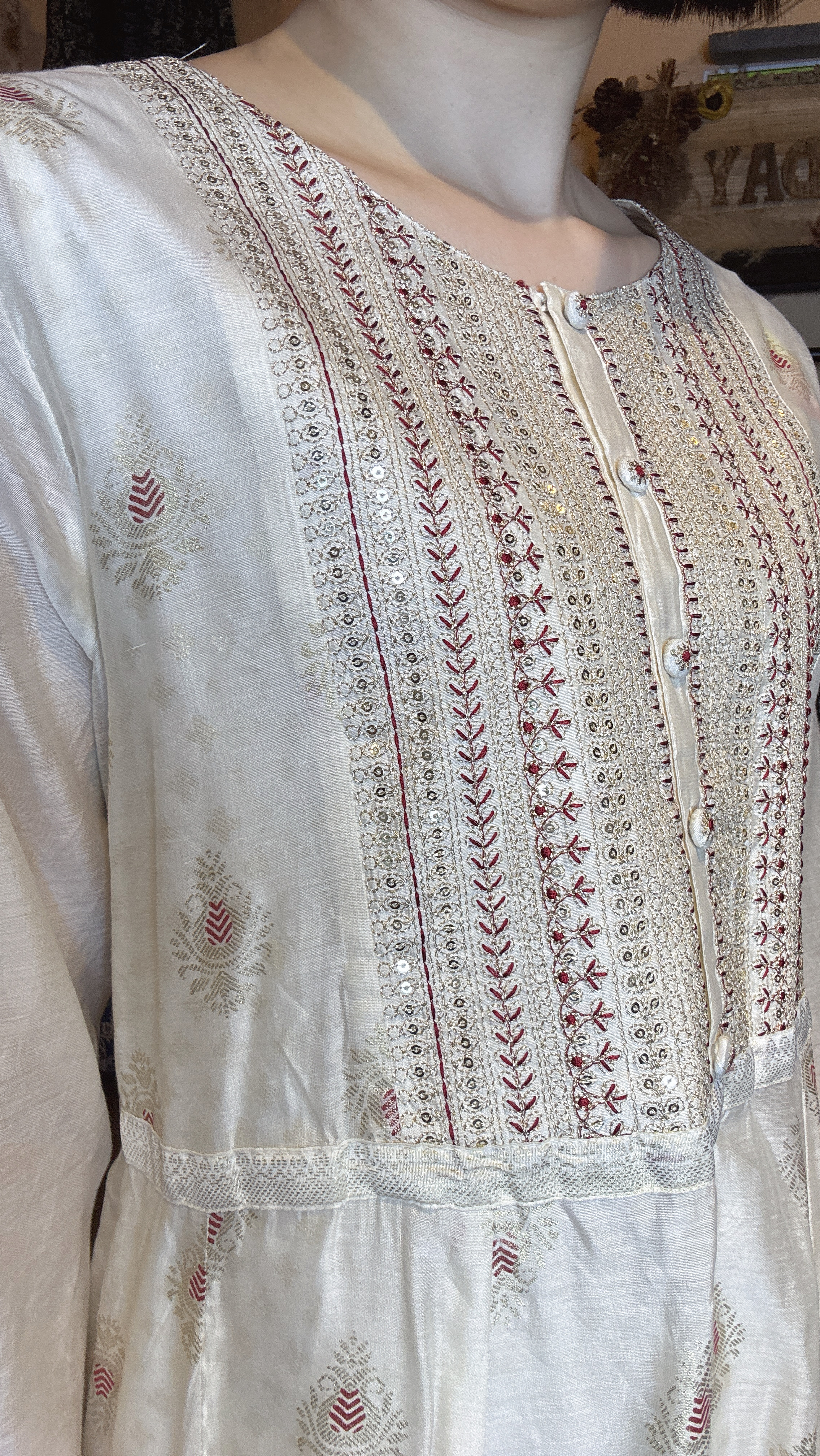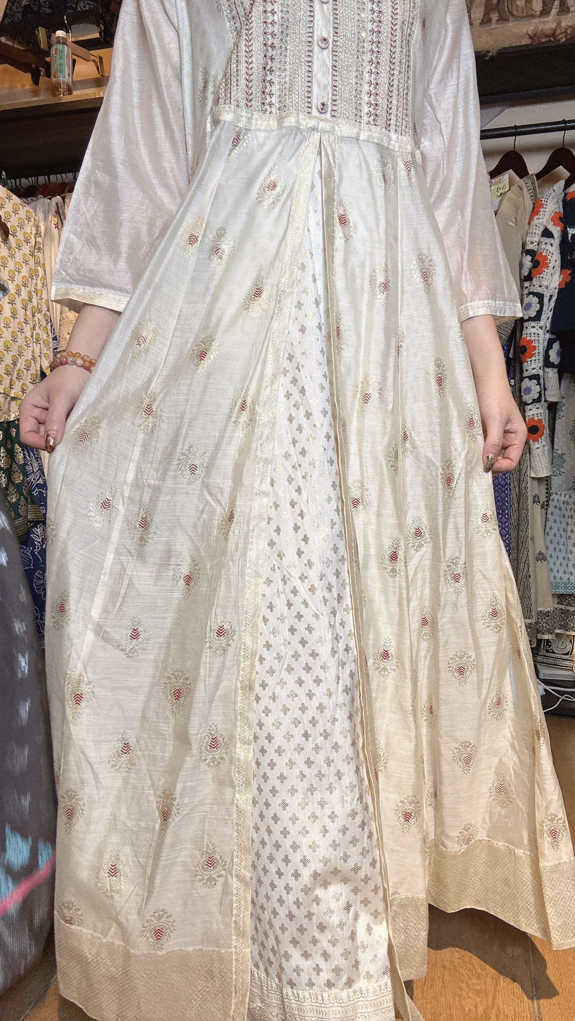米白色燙金背心連身裙配中袖珠片刺繡罩衣一套兩件