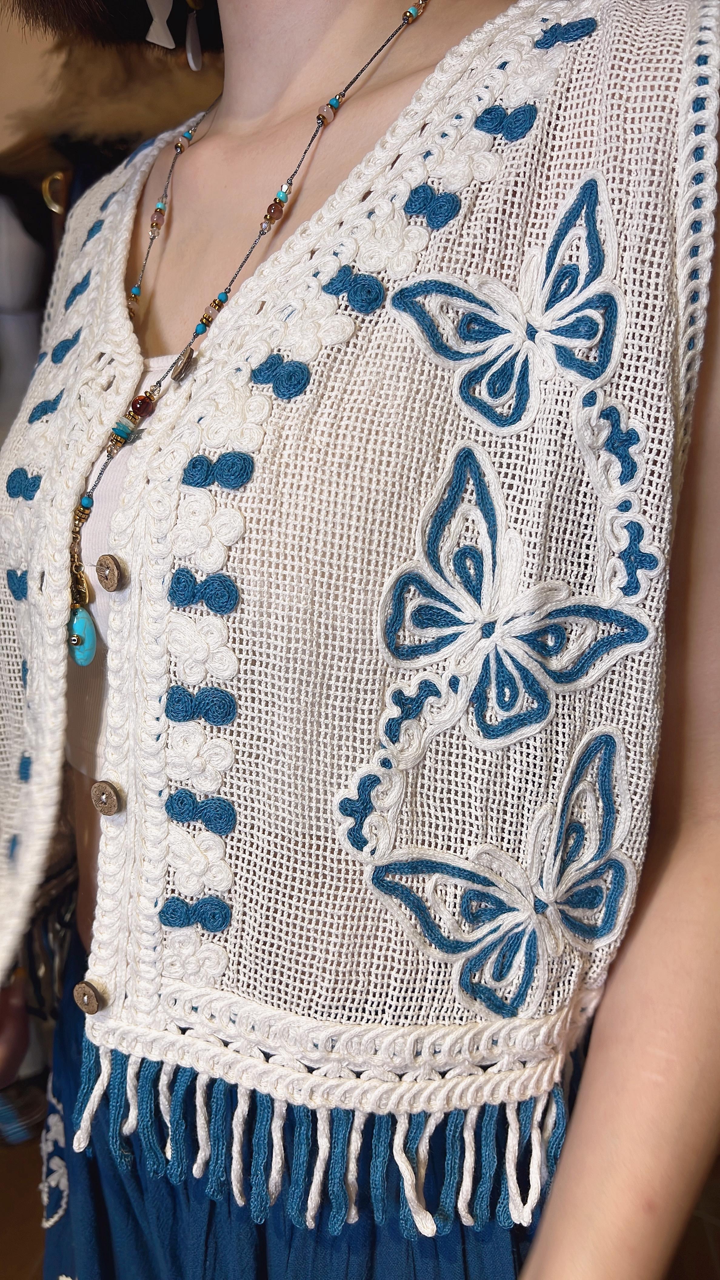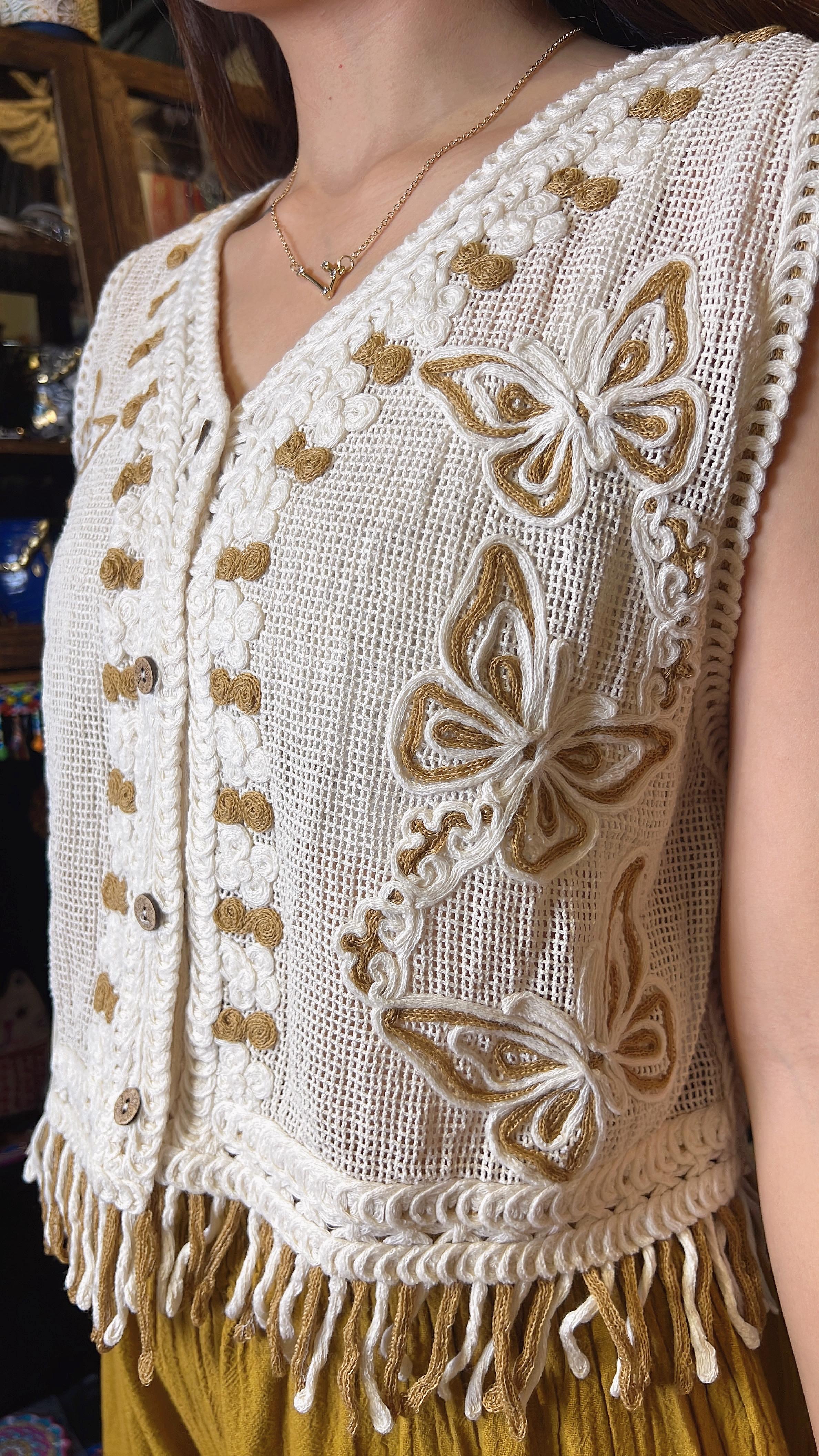 泰國系列 - 米白蝴蝶刺繡背心馬甲外套