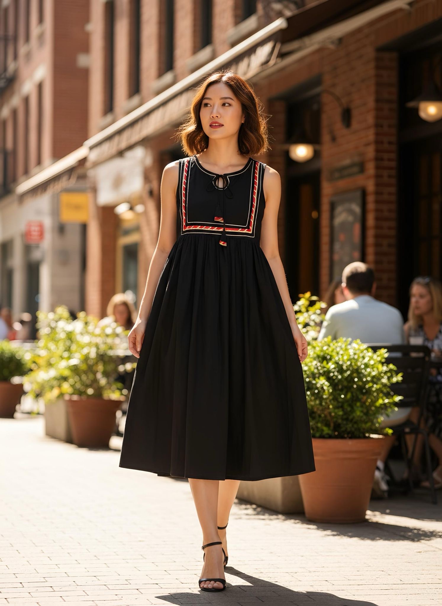 純黑色圓領金銀線設計背心連身裙