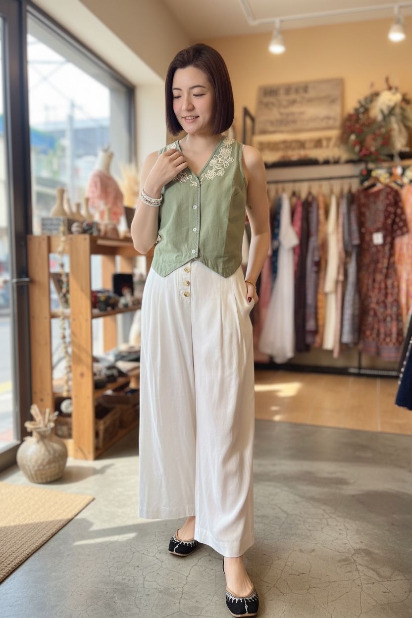 Pistachio with Neige Emb. Vest Top #421